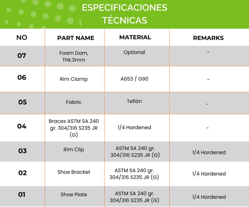 Gracias a la presión aplicada por los pesos, se maximiza la presión en la parte superior e inferior del sello mecánico. Debido a su construcción ponderada, debido a que los materiales utilizados son más delgados que el acero al carbono y el aluminio y no se requiere el uso de peso adicional, el sistema minimiza el escape del producto con la presión efectiva proporcionada por los resortes, a diferencia del sistema ponderado. El rendimiento eficaz del sellado puede cubrir aberturas de hasta 200 mm. y puede trabajar con una tolerancia de ±100 mm.